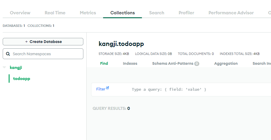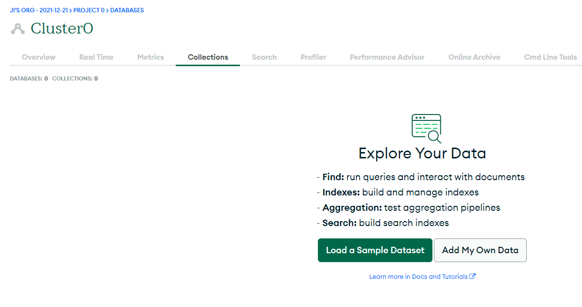 추가한 Cluster에서 Collections 추가하기
