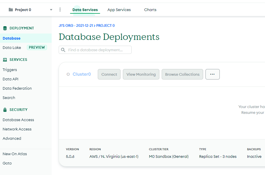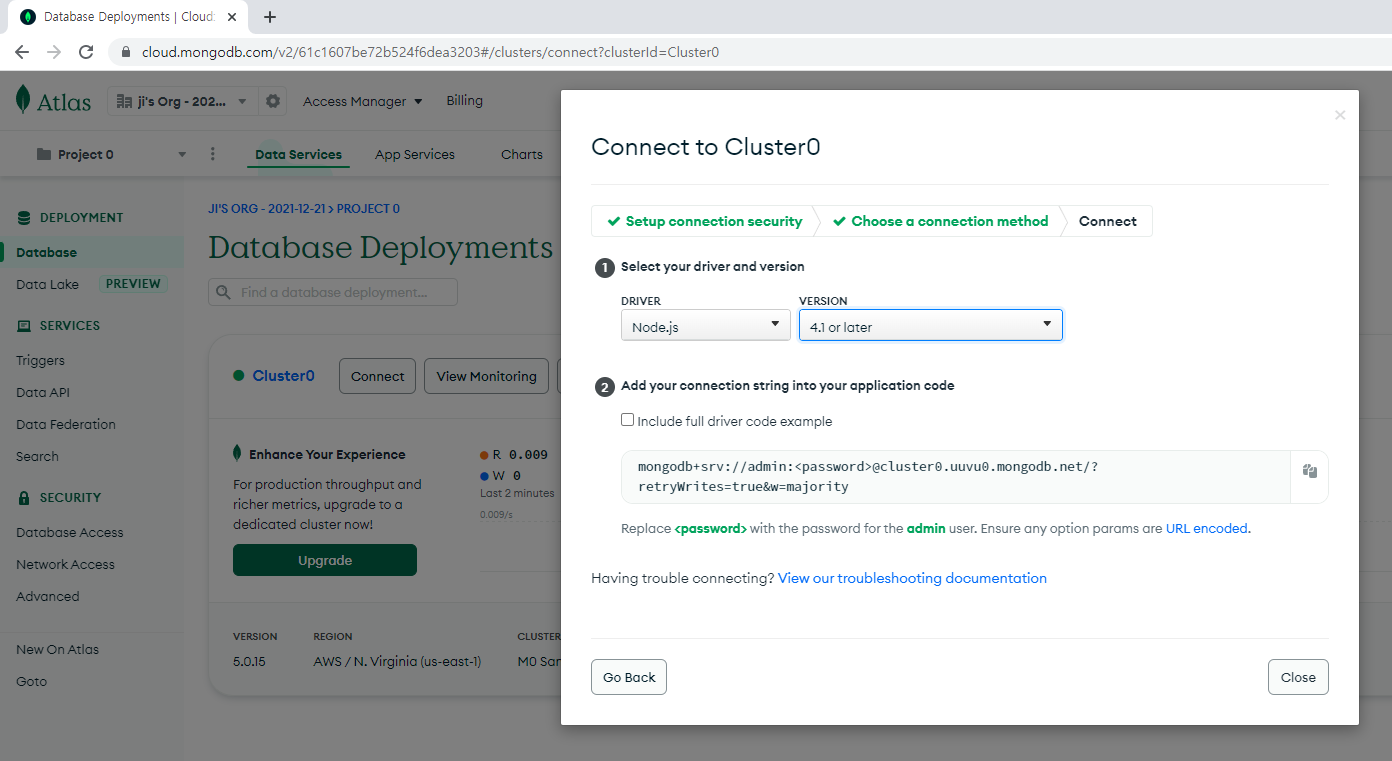 MongoDB Atlas 가입 후 호스팅받기