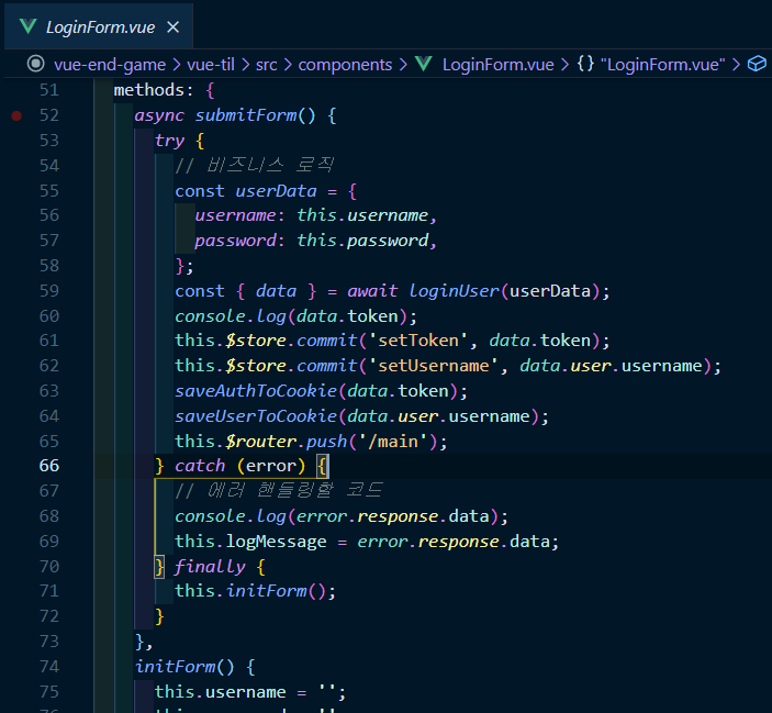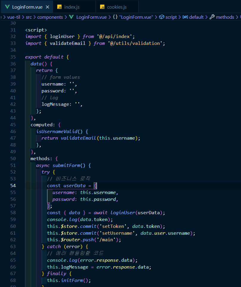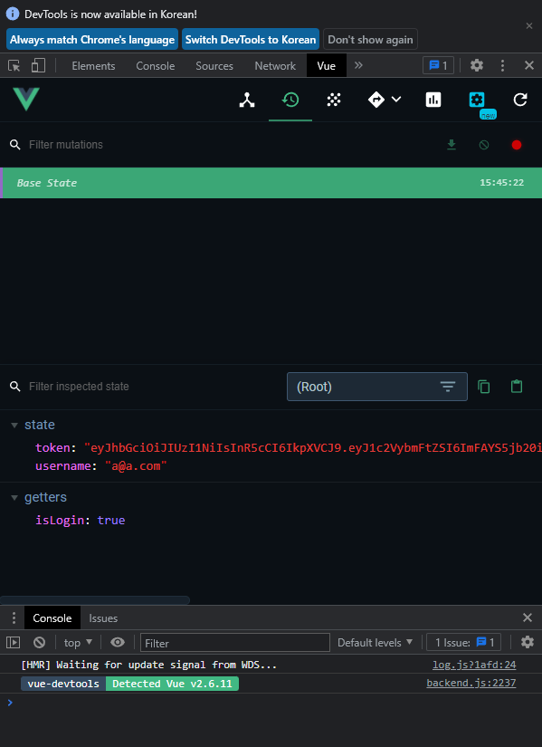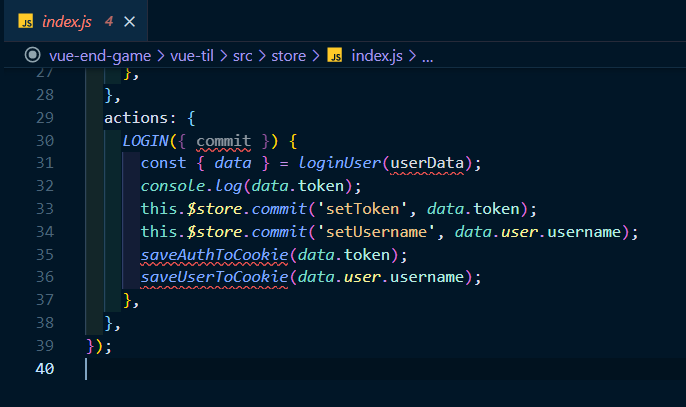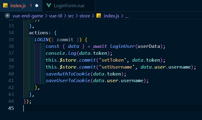 commit을 통해 mutation을 호출했다면 Action은 dispatch를 통해서 호출한다. context의 속성을 보면 dispatch가 있는 것으로 보아 action에서는 서로 다른 action을 호출할 수 있다는 것을 볼 수 있다.
