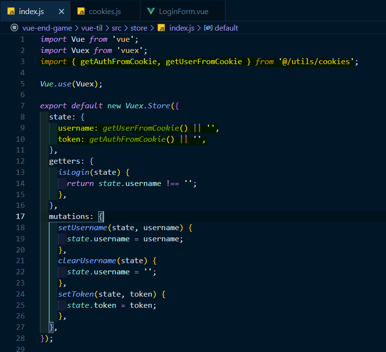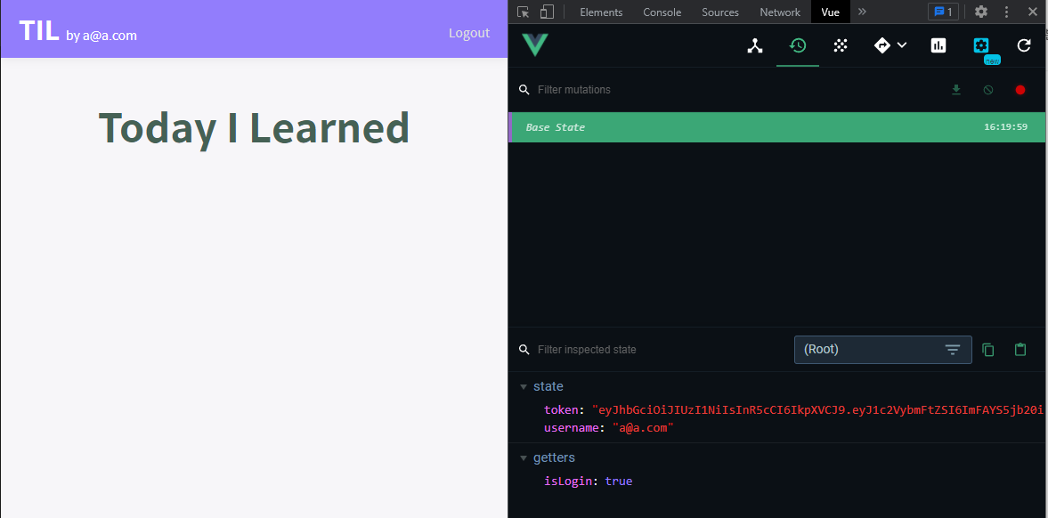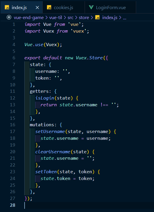 Vuex는 state, mutations, action, getters 4가지 형태로 관리가 되며,
